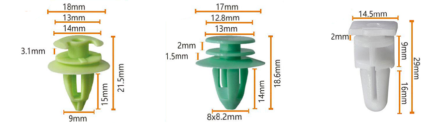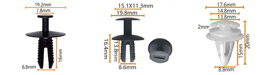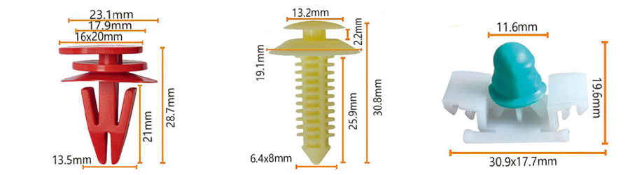 ຄລິບການປ່ອຍສຕິກໄວ: ໃຊ້ໃນການແກ້ໄຂບັນດາແຜງດ້ານຮ່າງກາຍ, ລົດໃຫຍ່, ເສັ້ນລວດລາຍລໍ້ແລະອື່ນໆ. ຄລິບເຫຼົ່ານີ້ມັກຈະເຮັດດ້ວຍປຼາສະຕິກທີ່ມີຄວາມແຮງສູງ, ມີຄວາມແຮງສູງແລະຖືກອອກແບບດ້ວຍຫນ້າທີ່ທີ່ປ່ອຍຕົວໄວ, ເຮັດໃຫ້ງ່າຍໃນການສ້ອມແປງຫຼືປ່ຽນແທນ.